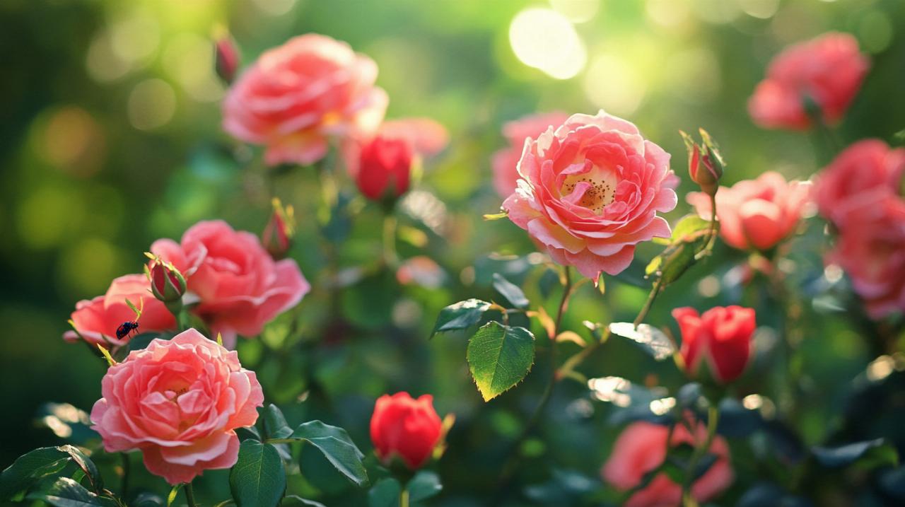 Identifier rapidement la présence de pucerons sur vos rosiers constitue la première étape pour intervenir efficacement. Ces petits insectes se regroupent généralement sur les jeunes feuilles et les tiges tendres des rosiers, zones où la sève circule abondamment et reste facilement accessible. Leur couleur varie du vert au noir en passant par le brun, ce qui peut parfois rendre leur détection plus difficile selon les variétés de rosiers et l'éclairage du jardin. Les feuilles touchées commencent à se déformer, s'enrouler sur elles-mêmes ou jaunir progressivement, perdant leur éclat naturel. Un autre indicateur révélateur reste la présence d'un film collant sur les feuilles et les tiges, appelé miellat, que les pucerons excrètent après s'être nourris de la sève. Ce miellat attire non seulement d'autres insectes, mais favorise également l'apparition de fumagie, une moisissure noirâtre qui peut compromettre la photosynthèse de la plante. La surveillance attentive au printemps s'avère particulièrement importante car les jeunes pousses demeurent les plus vulnérables face à ces parasites.